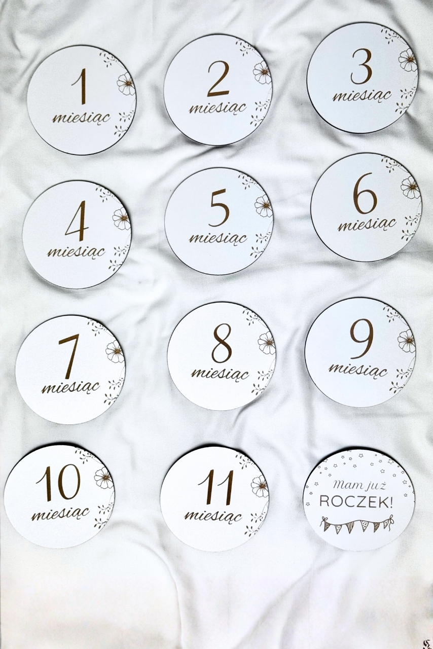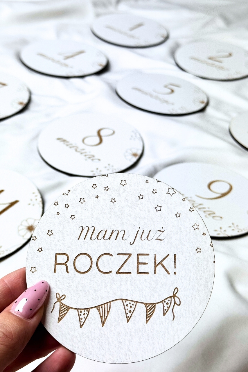 Białe karty do zdjęć z miesiącami są grube, solidne i niezwykle trwałe – dzięki temu będą wspaniałą pamiątką na lata. Każdy element jest wypalany laserowo, co gwarantuje precyzję detalu i wysoką estetykę. Wersje białe oraz naturalne drewniane pozwalają dopasować zestaw do wybranej estetyki zdjęć.