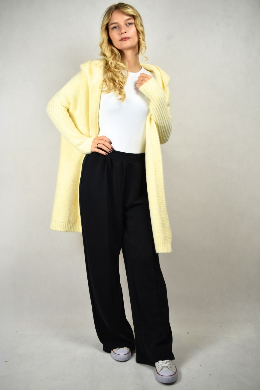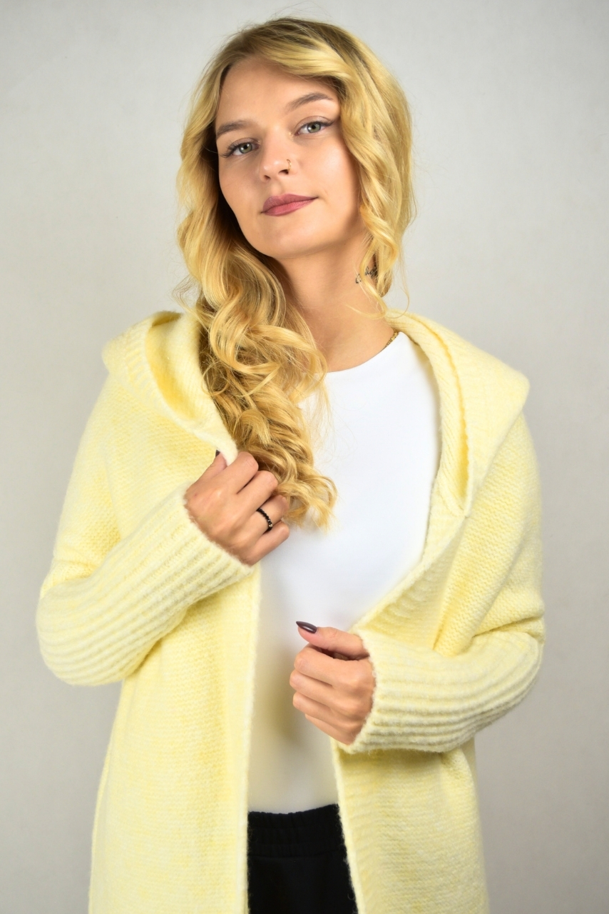 Długi kardigan z kapturem waniliowy to wyjątkowo miękka i przytulna propozycja, która idealnie sprawdzi się w codziennych stylizacjach. Wykonany z ciepłej dzianiny z domieszką wełny, zapewnia komfort i wygodę przez cały dzień. Prosty, klasyczny krój uzupełniony długimi ściągaczami na rękawach sprawia, że model prezentuje się elegancko, ale z nutą swobodnego luzu.