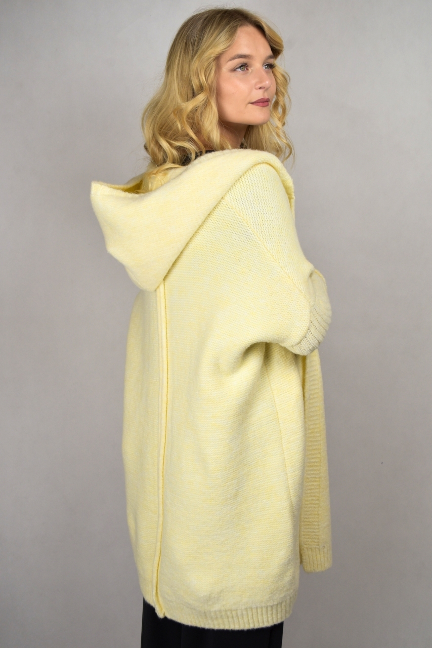 Długi kardigan z kapturem waniliowy