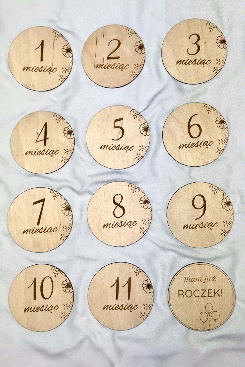 Drewniane karty z miesiącami do zdjęć są grube, solidne i niezwykle trwałe – dzięki temu będą wspaniałą pamiątką na lata. Każdy element jest wypalany laserowo, co gwarantuje precyzję detalu i wysoką estetykę. Wersje białe oraz naturalne drewniane pozwalają dopasować zestaw do wybranej estetyki zdjęć.