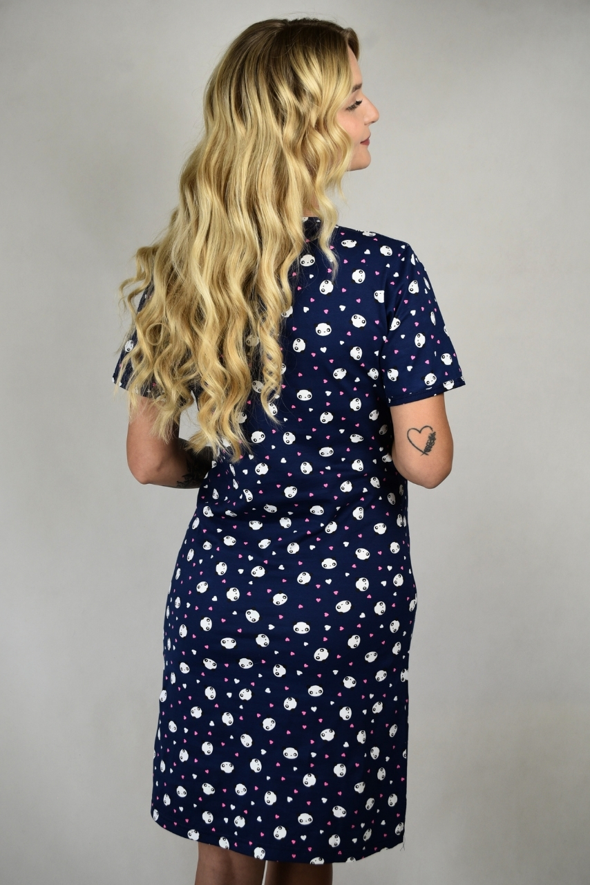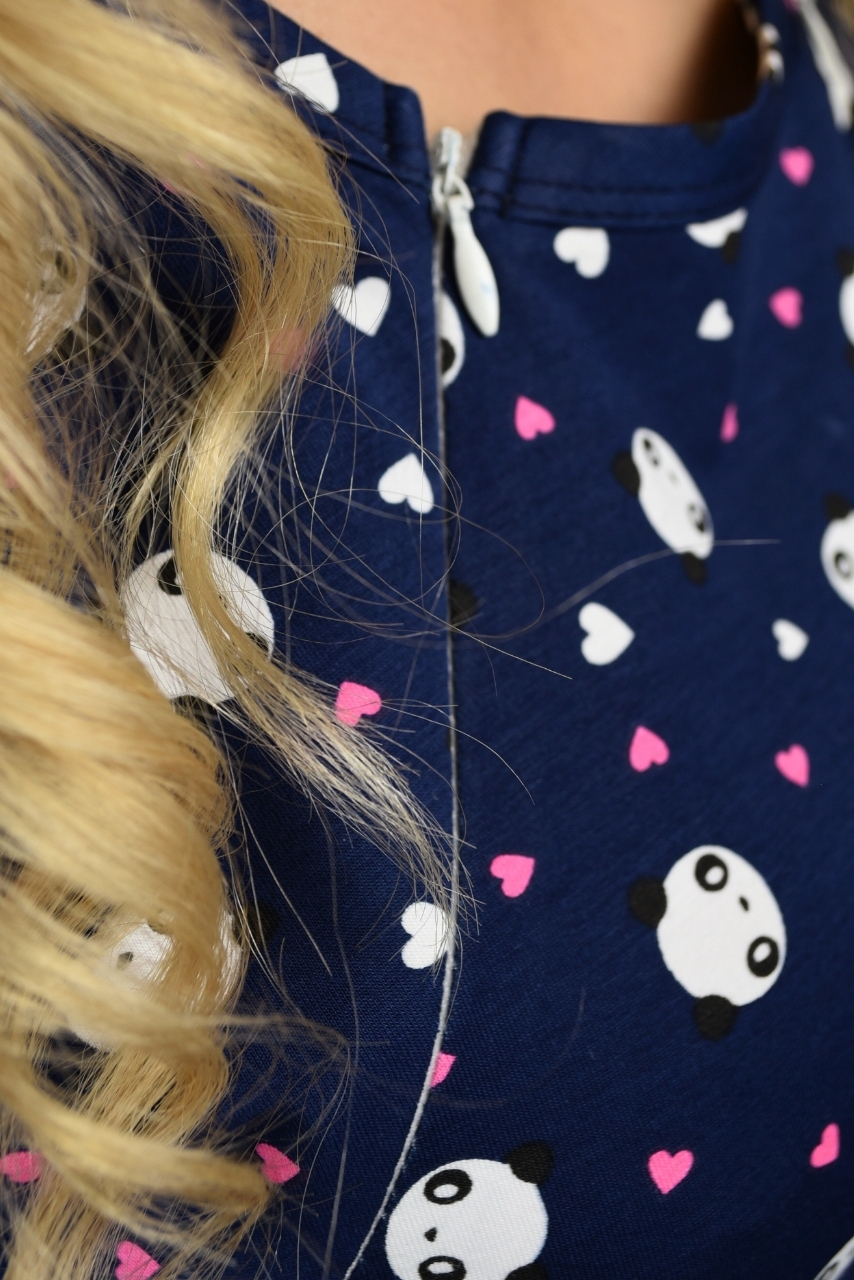 Nowoczesna koszula do karmienia w szarym kolorze, zaprojektowana z myślą o komforcie przyszłych mam. Uszyta w 100% z miękkiej, naturalnej bawełny, jest przewiewna, przyjemna w dotyku i elastyczna. Uroczy wzór w małe pandy nadaje jej wyjątkowego charakteru, a praktyczne zamki umieszczone po obu stronach dekoltu pozwalają na szybkie i dyskretne karmienie dziecka. Granatowa koszula do karmienia z zamkiem po dwóch stronach to praktyczne i wygodne rozwiązanie dla każdej kobiety, ceniącej wygodne rozwiązania.