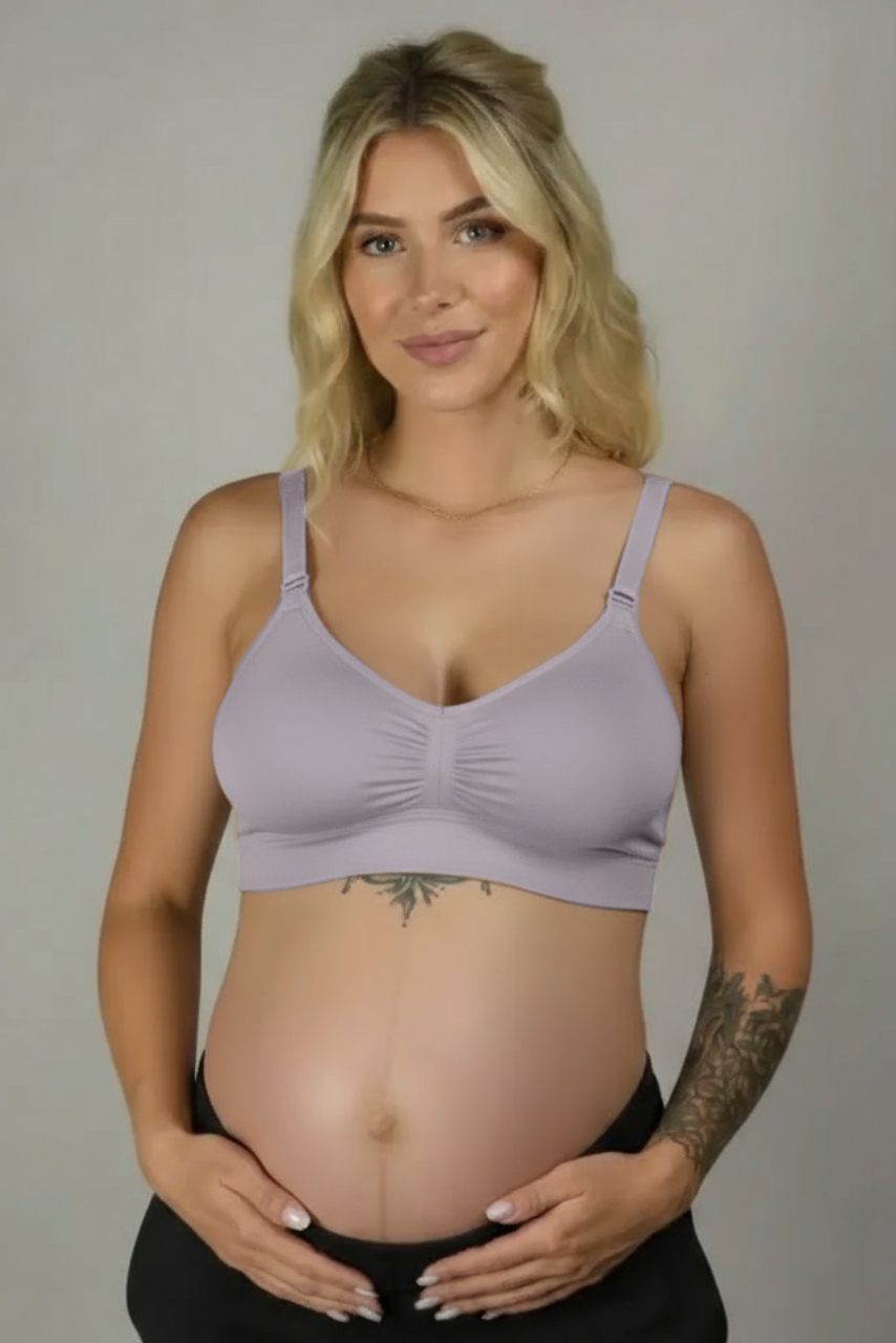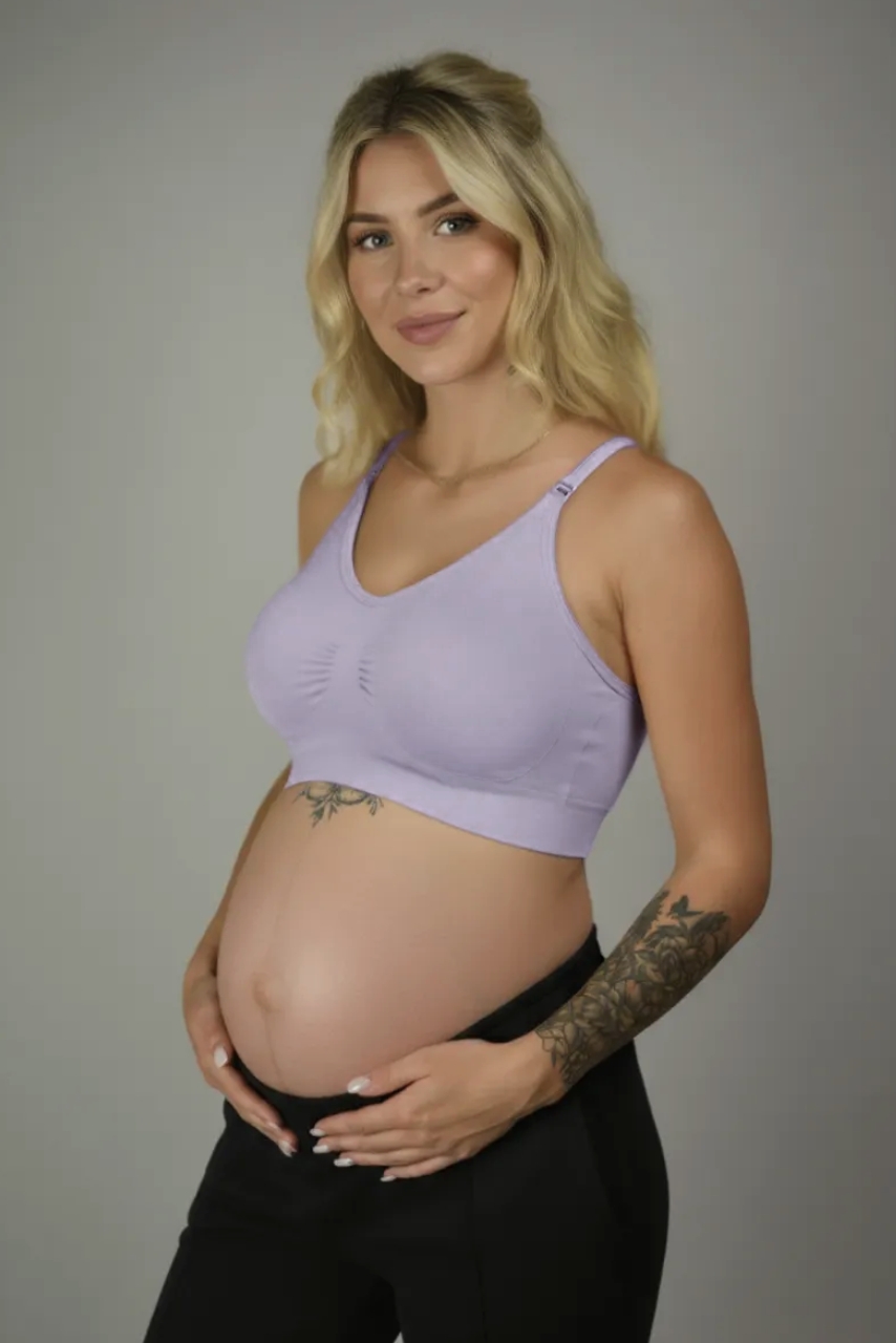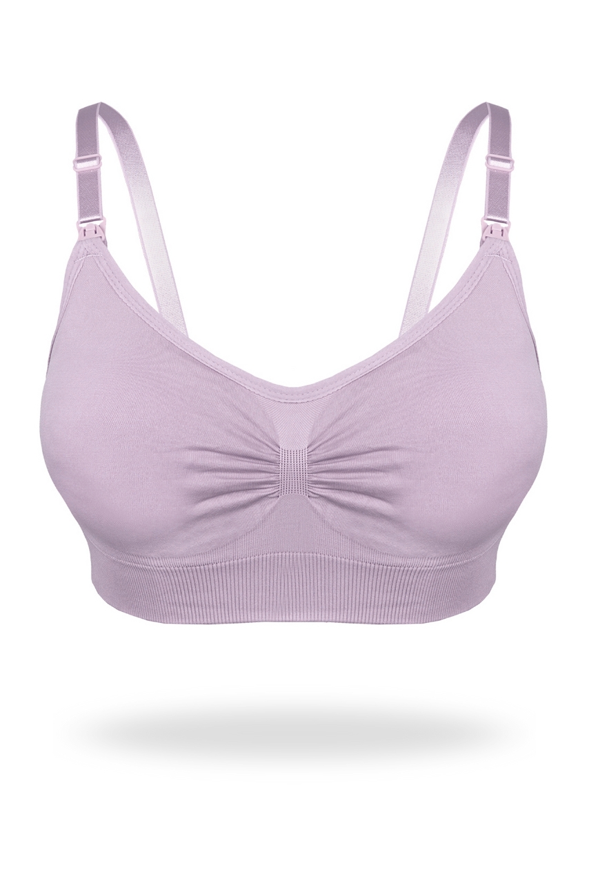Liliowy sportowy biustonosz do karmienia z marszczeniem